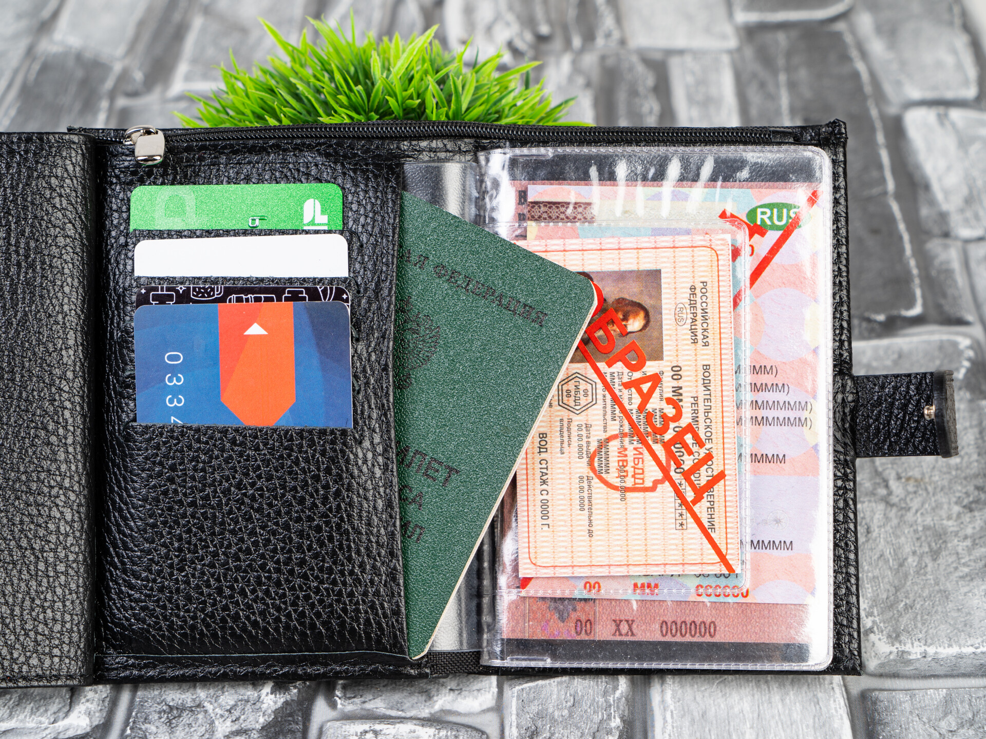 Под ним расположены 5 отсеков для пластиковых карт.