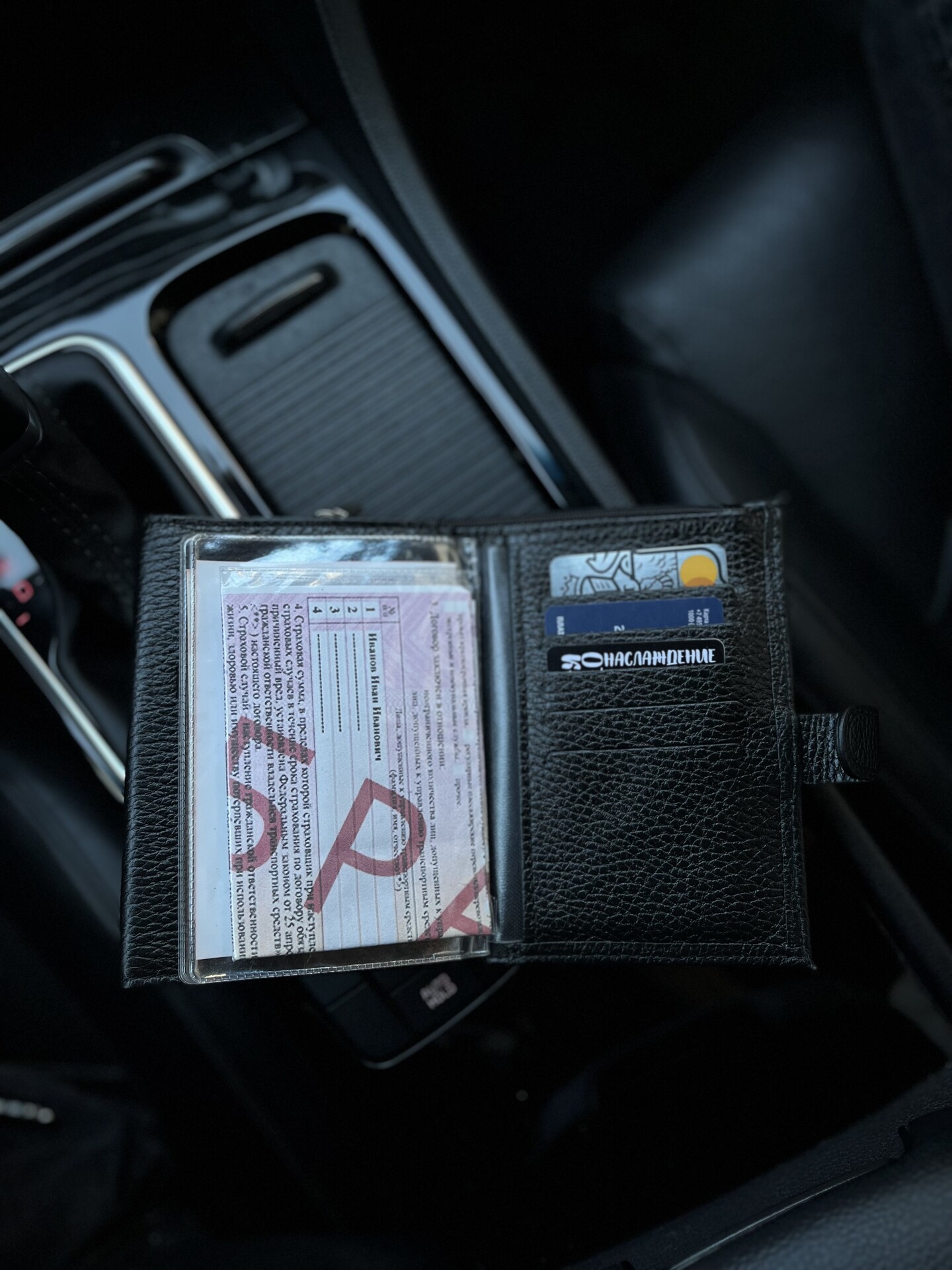 После паспорта расположен вкладыш для всех видов автодокументов, включая в себя отсек под права, 4 отсека под стс, либо другие документы и отсек размером А5 под страховку! После вкладыша так же расположены 5 отсеков для пластиковых карт!